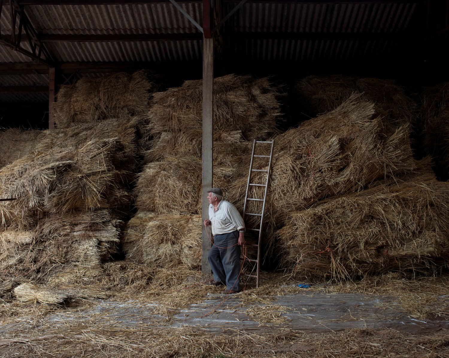 I am using the conceit of this imaginary place/name, ‘Durlescombe’ to explore a lot of ideas. Primarily I am documenting the history and practice of working with the land and also examining my own attachment and family history related to this area in Devon. This includes my early memories from holidays and also this ‘other’, that which is carried with us from past generations. Fate brought me back to Devon and unbeknown to myself I began exploring places that directly related to my own personal family history. I feel a deep connection to Devon and the landscape and I am using Durlescombe to try and understand this relationship. My ancestors used to work the land, owning grain mills across Mid-Devon for many generations. Sadly there are no longer any working commercial mills, most have been knocked down, fallen into ruin or been converted into homes. So initially I made contact with threshers who process wheat to make thatch for houses, an old craft which hasn’t changed much in the last century. In the autumn a retired farmer I met whilst following the threshers invited me to watch him make cider. He used the left over wheat to sandwich the layers of apple to stack in the press. For me this connection between the wheat being harvested for thatching and processed in the summer and then used in the autumn for making Cider was a beautiful thing and told me a lot about working with the land.