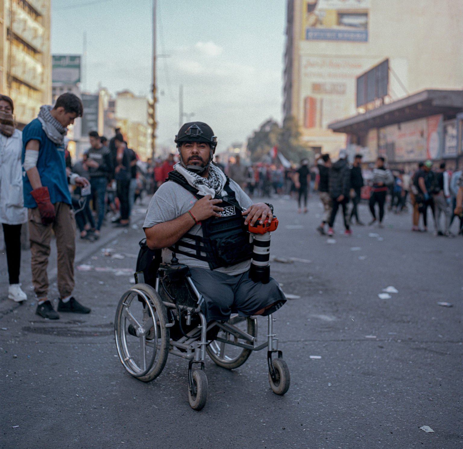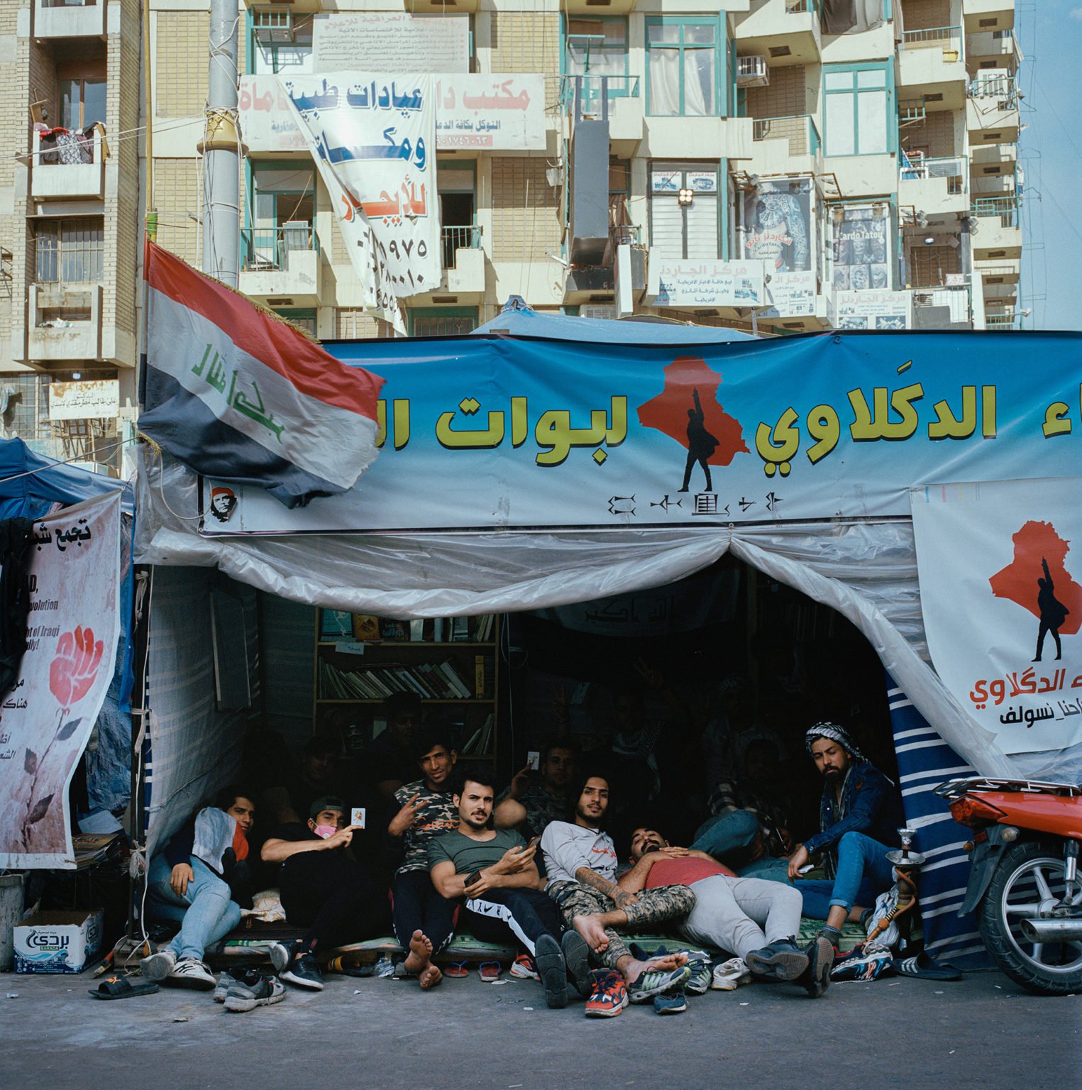 Fascinated by the statues in Mosul, a series of 2000 year old statues situated in Iraq that were destroyed by Isis militants in 2015, Janne Korkko became well educated about what was going on across the country. A photo-journalist by trade, Korkko first visited Iraq in 2016 and has since returned four times over the past three years. After making an important decision to visit in 2019, Korkko bravely integrated himself into the camps at Tahrir square. “I have a very deep desire to see and understand the gravity of the situation. I have lived, eaten, slept and shared both happy and sad moments. I have felt what it means to live without rights, a home, without money, without power, with disabilities, to be blind. I was there and listened. Despair is the thing that comes to mind first of all. People want fundamental rights, and that’s why people of all ages stay on the square. Protests have become a duty for all ages.”