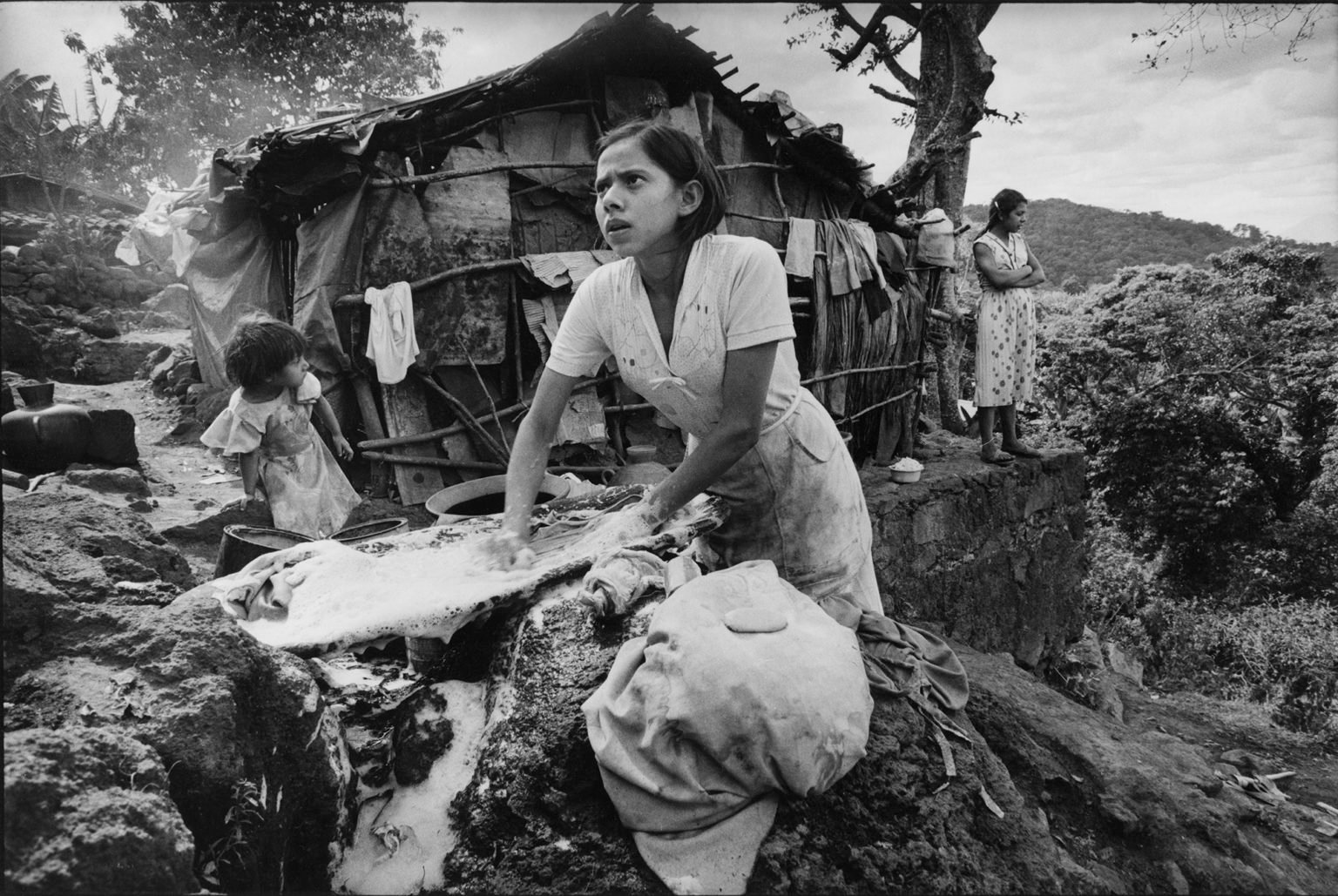 With colour, one practical issue was the narrow exposure latitude of colour transparency film – a quarter of a stop could make the difference between a perfectly exposed slide and one that was out. Along with others shooting transparency, I would carry an incident light meter in the top pocket of my camera vest and would take a quick reading before every colour exposure. In the early morning and late afternoon the tropical light of Central America can be magical. But after 9.30 am and up to about 3.30 pm the brightness of the light exceeds the two stops between highlight and shadow that transparency film can handle without using fill-in flash. Even used with great care, fill-in flash can have a certain look and in conflict zones it is not always appropriate. Trip a flash and you can risk attracting attention to yourself and others. Black and white film, however, has a seven stop exposure latitude so it’s possible to shoot through the day without that particular issue.