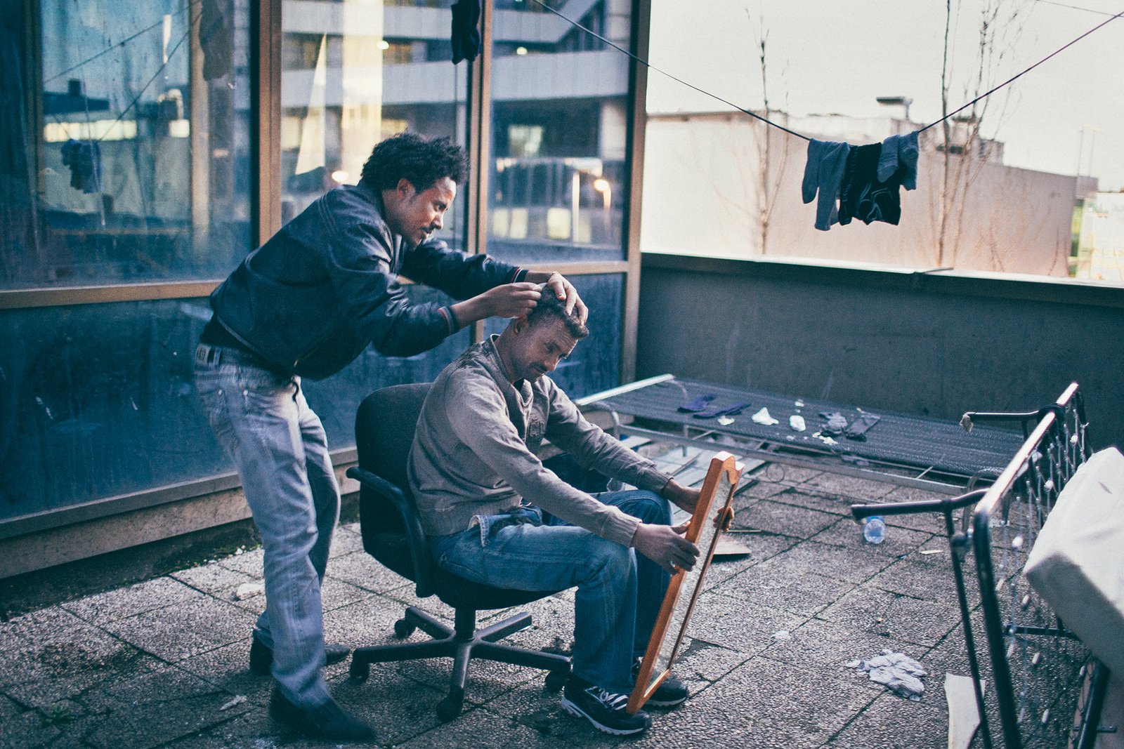 Jung’s Migration series, split into different chapters following African refugees in Italy where Eritrean refugees live under poor conditions on the streets of Rome, in self-built shanty towns and abandoned buildings. Jung met with several asylum seekers in Germany’s asylum centres, the Gerhart-Hauptmann-Schule in Berlin. Once a main school, in December 2012 several hundred refugees occupied the building and since then have been living in the building complex. Jung’s Migration series showcases the issues that the European Migration policy posed and the consequences of resettlement, his images are personal, intimate and capture private moments of their surroundings and day to day lives and is a stunning testament to Jung’s ability in long-form photo-journalism.